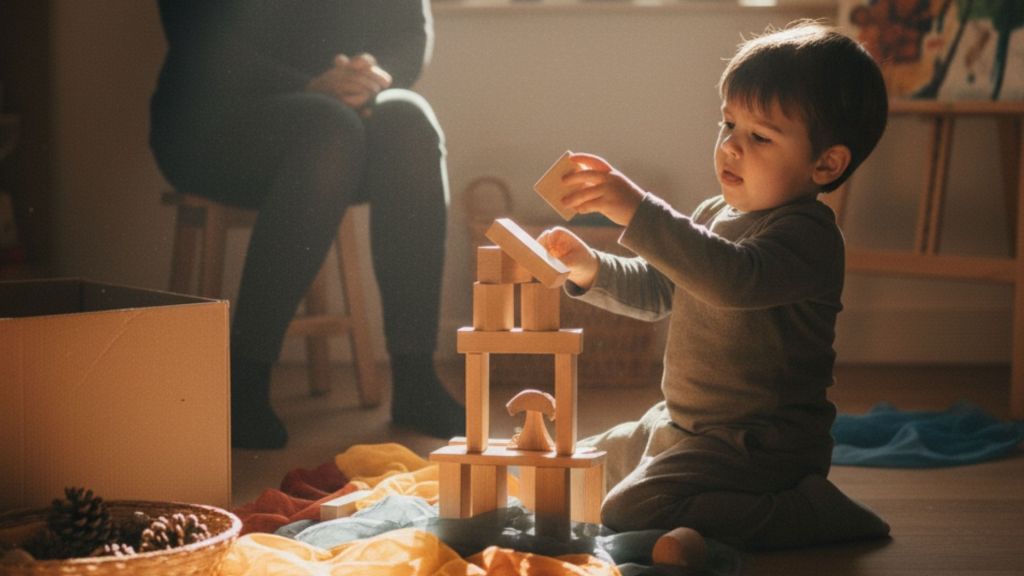 - En el juego con bloques: En lugar de sugerir «pon este aquí», observa cómo el niño prueba diferentes configuraciones, aunque se caigan una y otra vez. Tu presencia tranquila es suficiente.