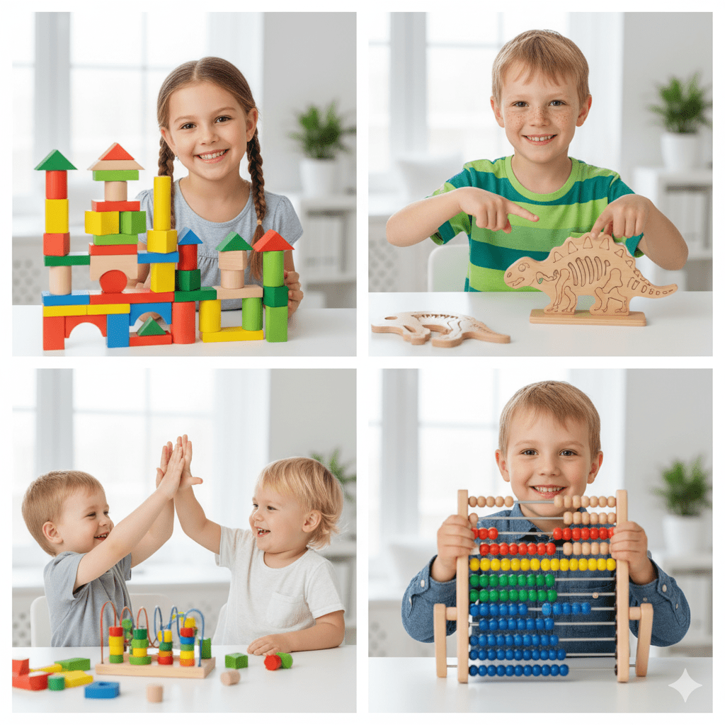 Al ser más simples que los juguetes tecnológicos, requieren más imaginación y manipulación. Cada bloque, cada forma, es un pequeño obstáculo que, al ser superado, refuerza la autoconfianza. La madera, con su sensación táctil y su peso, ofrece una experiencia de juego más concreta y fomenta la concentración necesaria para esos «5 minutos de súper esfuerzo»